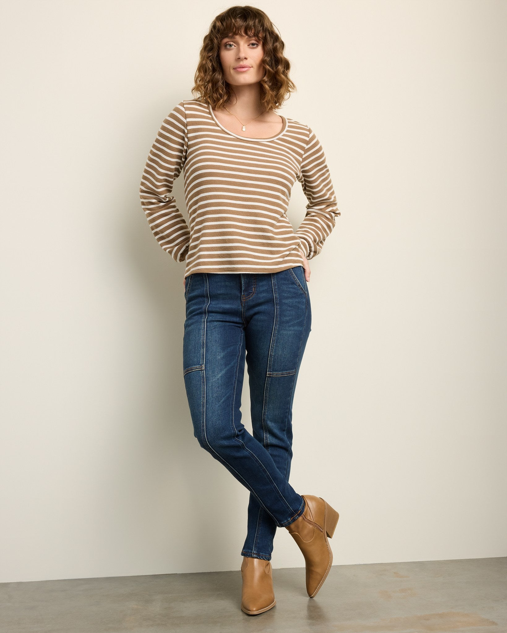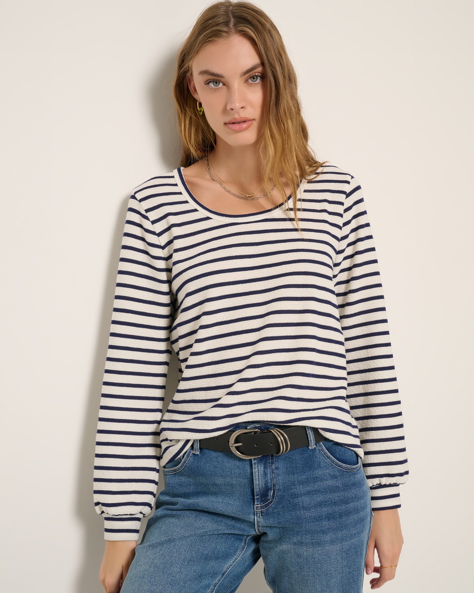 This striped tee’s got a little puff, a little scoop, and a lot of potential. Whether you're “just running errands” or secretly showing off, it knows how to play it cool.