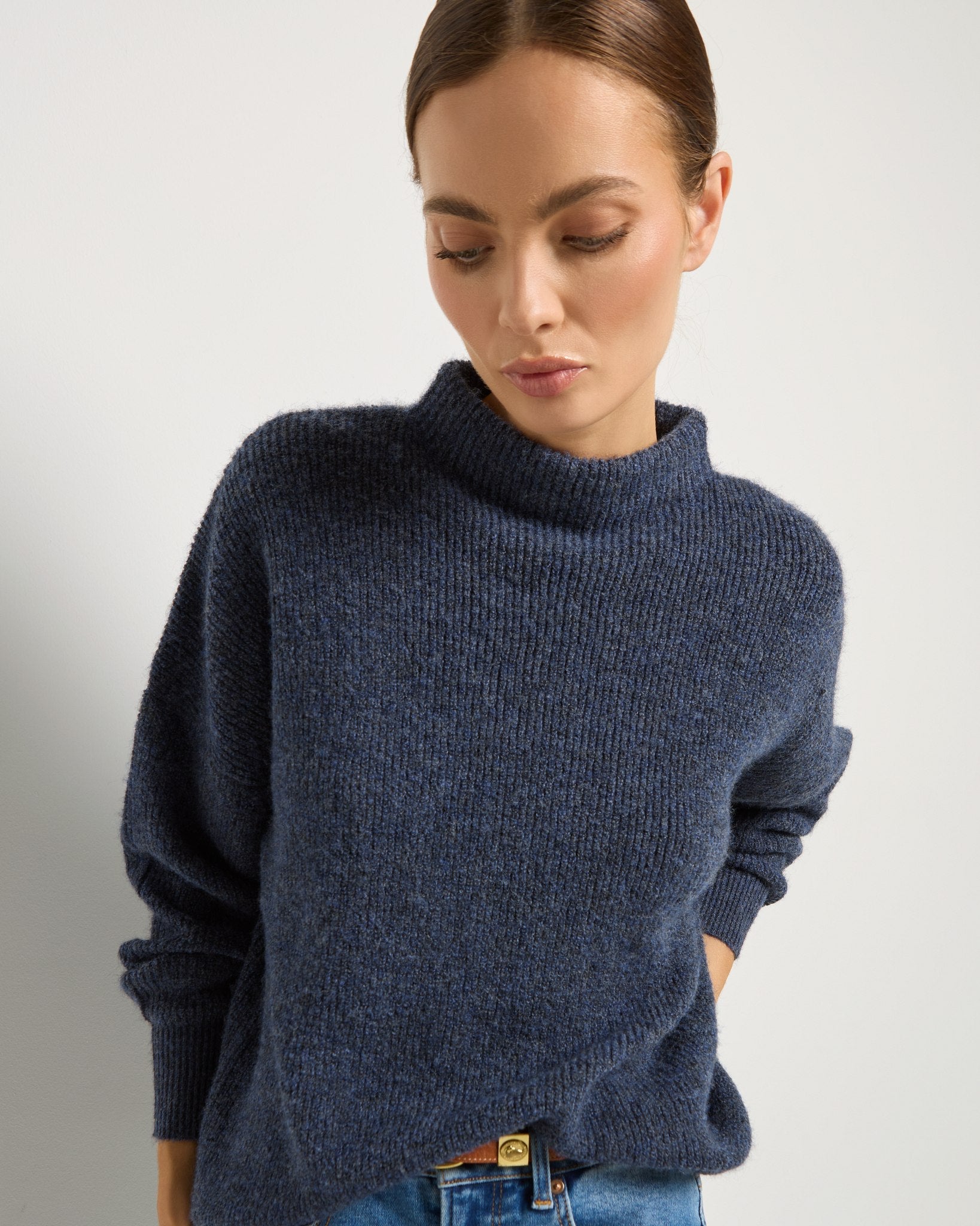 Clean lines, timeless texture. This funnel neck sweater keeps it classic with its ribbed knit and no-fuss fit. Medium weight for easy layering, and polished enough to dress up or down without trying too hard (because we don’t).