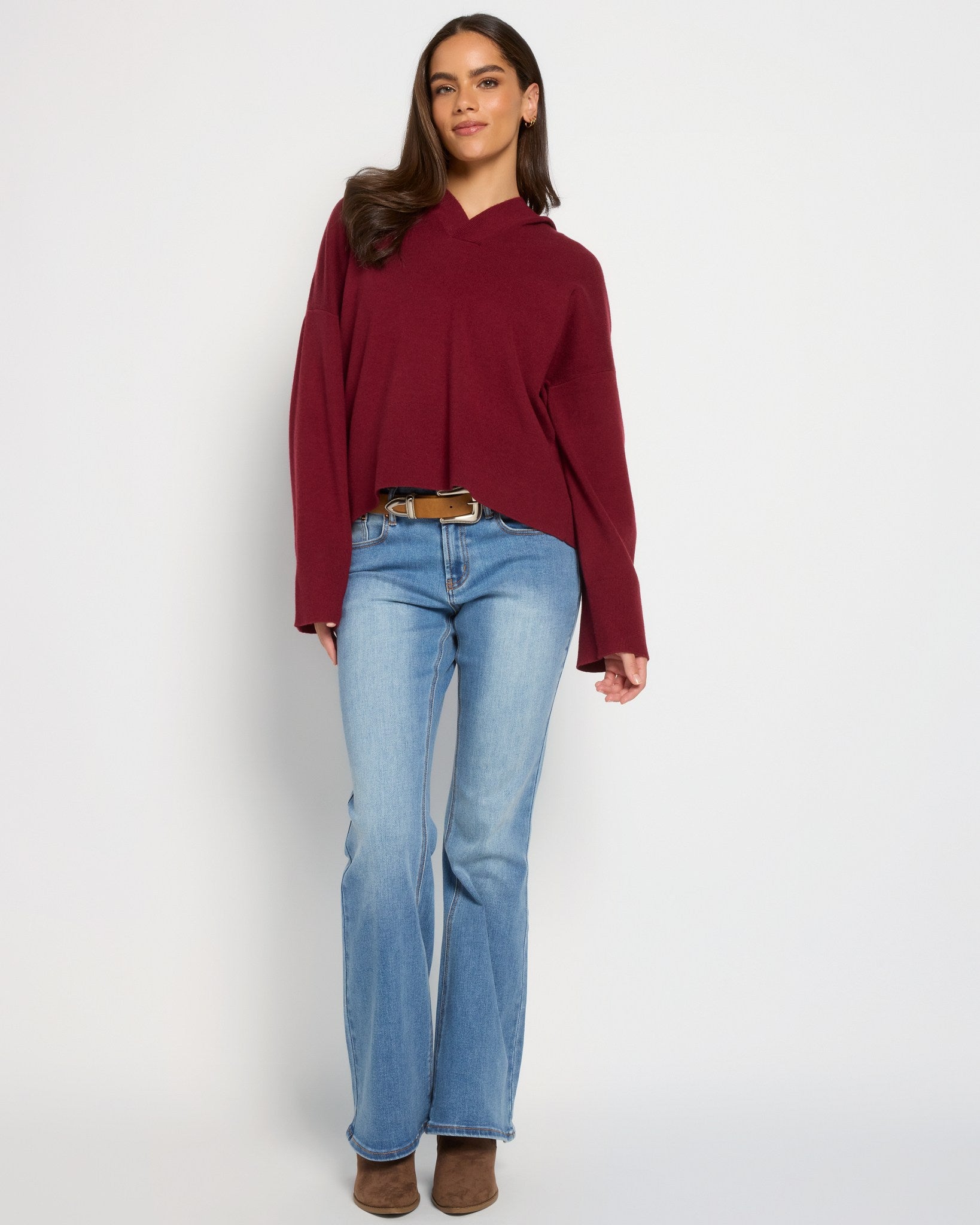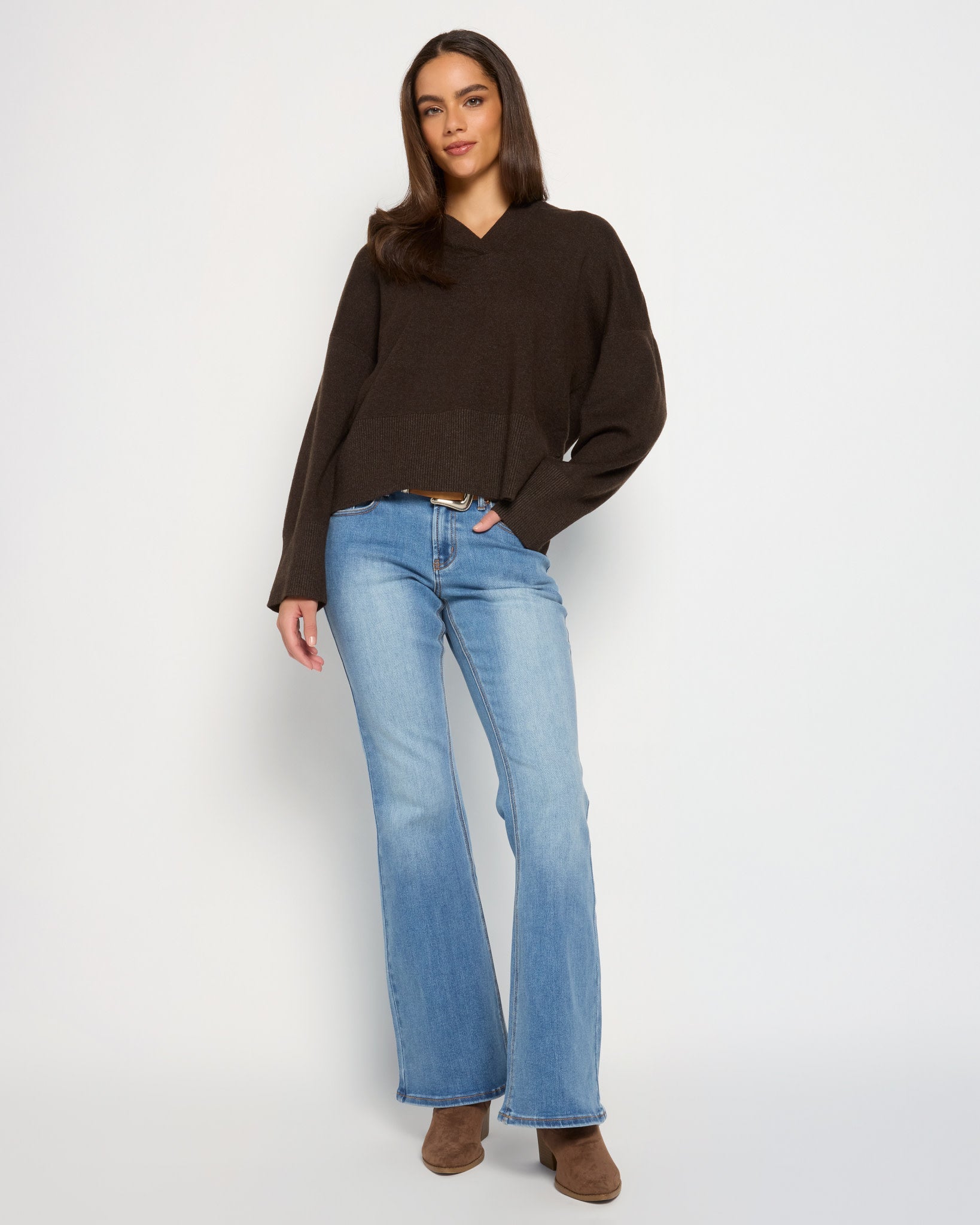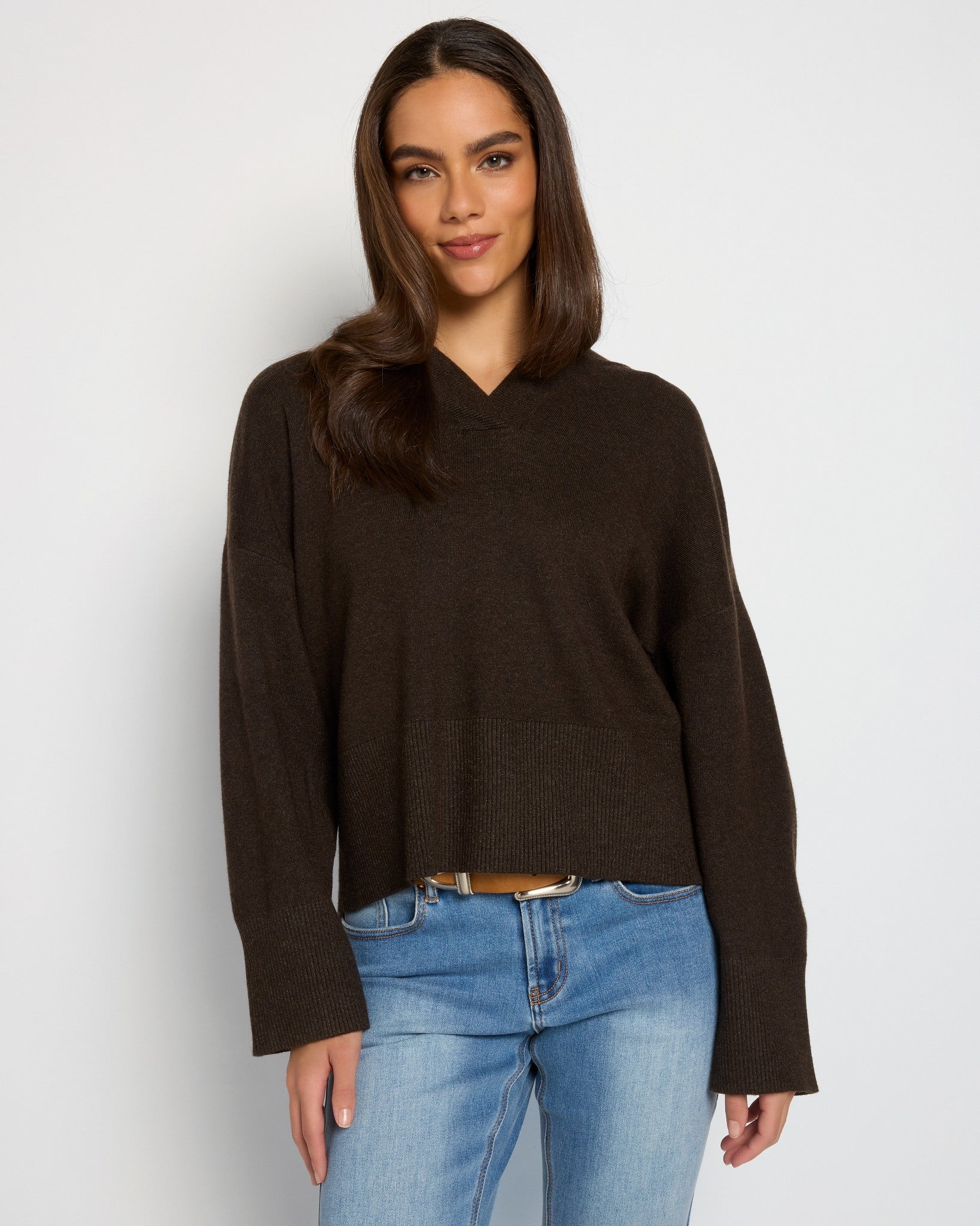 Laidback polish, knit to perfection. With a deep V, soft knit, and just the right amount of slouch, this isn’t your gym-day hoodie, it’s your “I still want to be cozy but look like I tried” sweater. Bonus points for the ribbed trim that keeps it all feeling polished(ish).